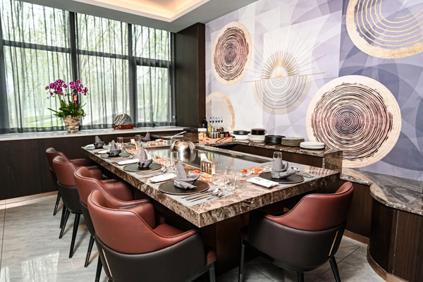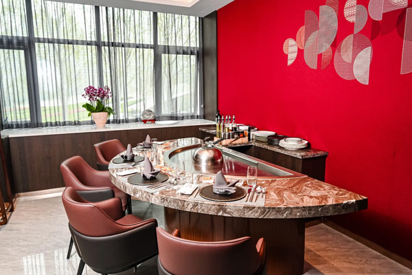 5个包间,布局5台8人位铁板烧设备,共计40个板前就餐位2台半圆形铁板烧设备,每个包间提供8个板前就餐位3台长方形铁板烧设备,每个包间提供8个板前就餐位设备发货志铭铁板烧餐厅一站式开店服务铁板烧·志铭造-志铭铁板烧拥有超20年高端铁板烧设备的研发和制造经验,获得多项国内外质量认证证书和专利技术,服务过数千家国内外特色铁板烧餐厅。